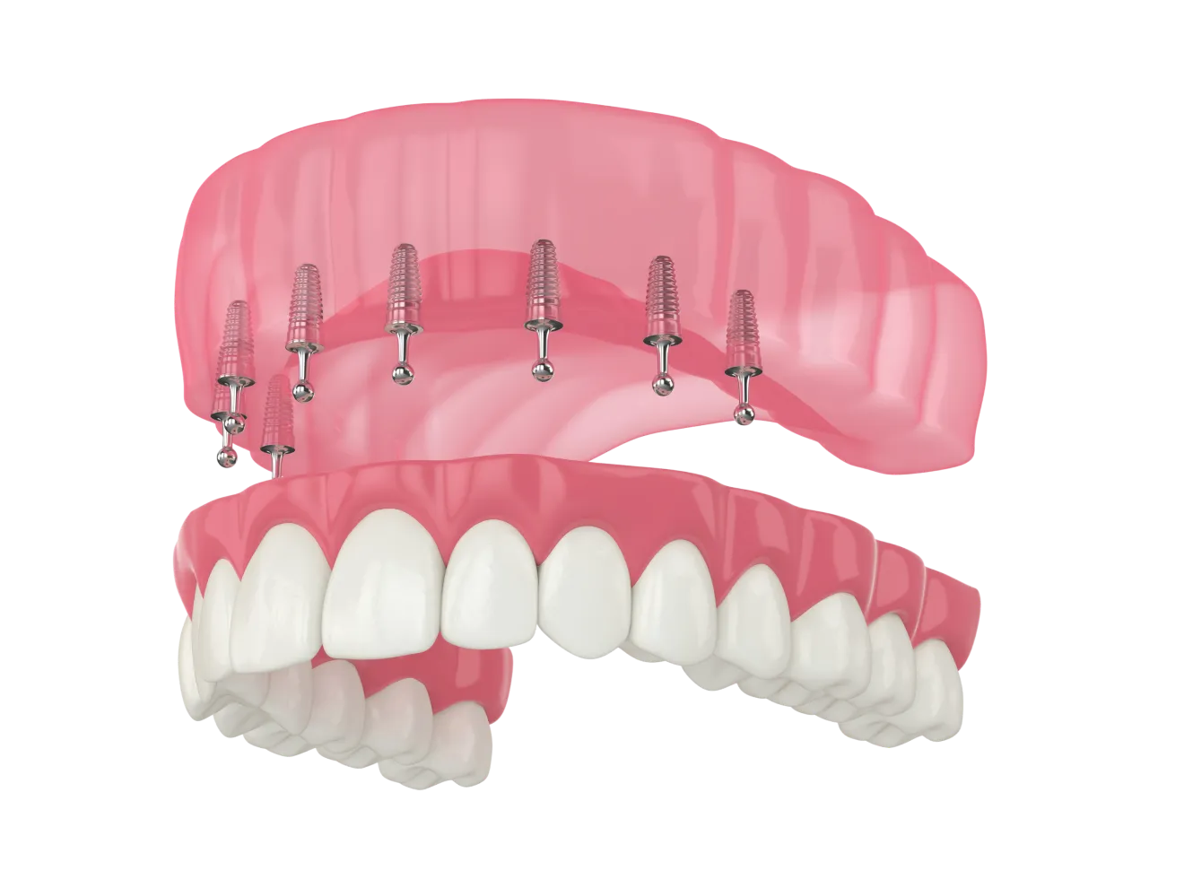 Monarch Snap-On™ is a modern, full-mouth tooth replacement solution that uses small, minimally invasive dental implants to hold a custom denture securely in place. It’s a simpler, more comfortable alternative to traditional implant systems, designed to restore both function and confidence.